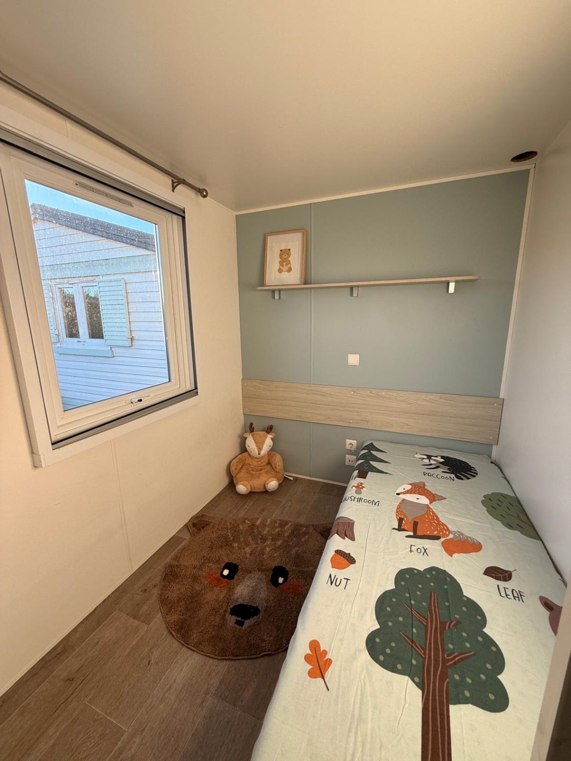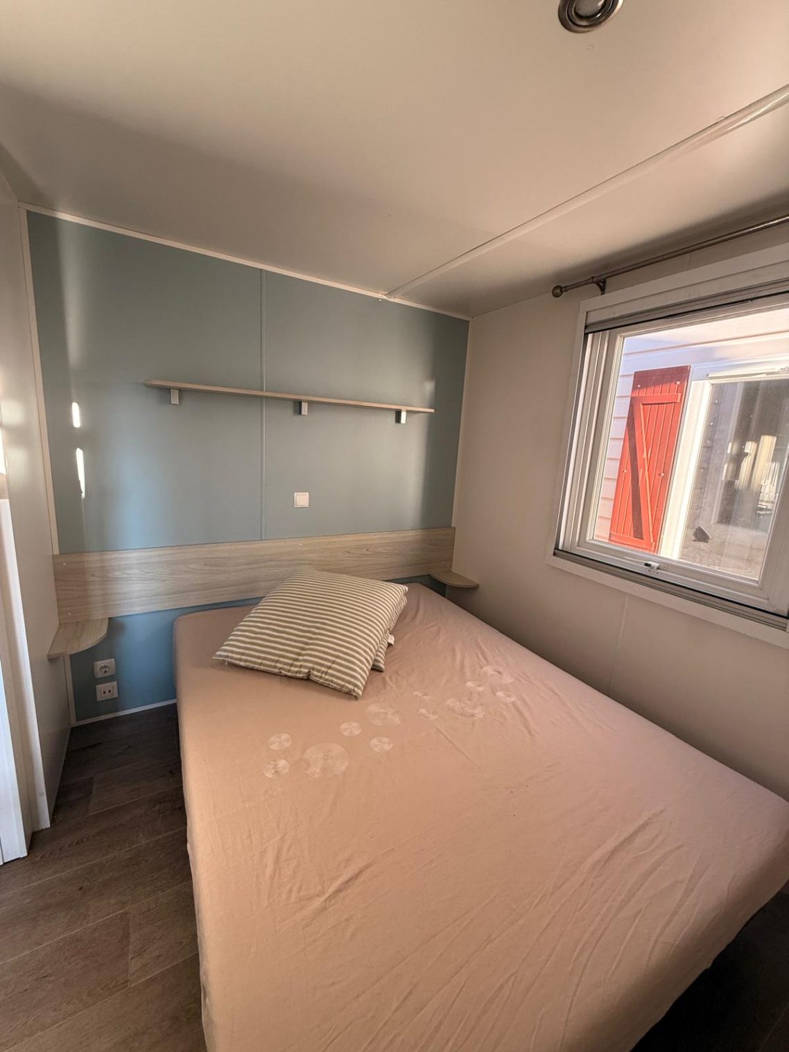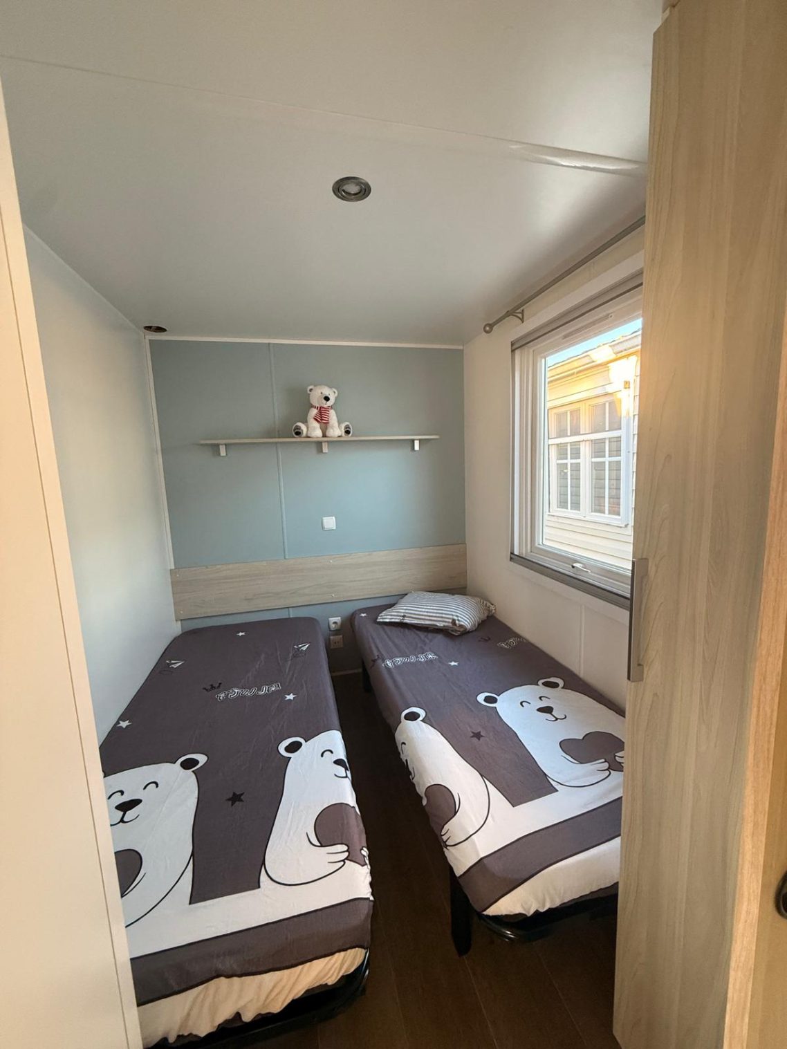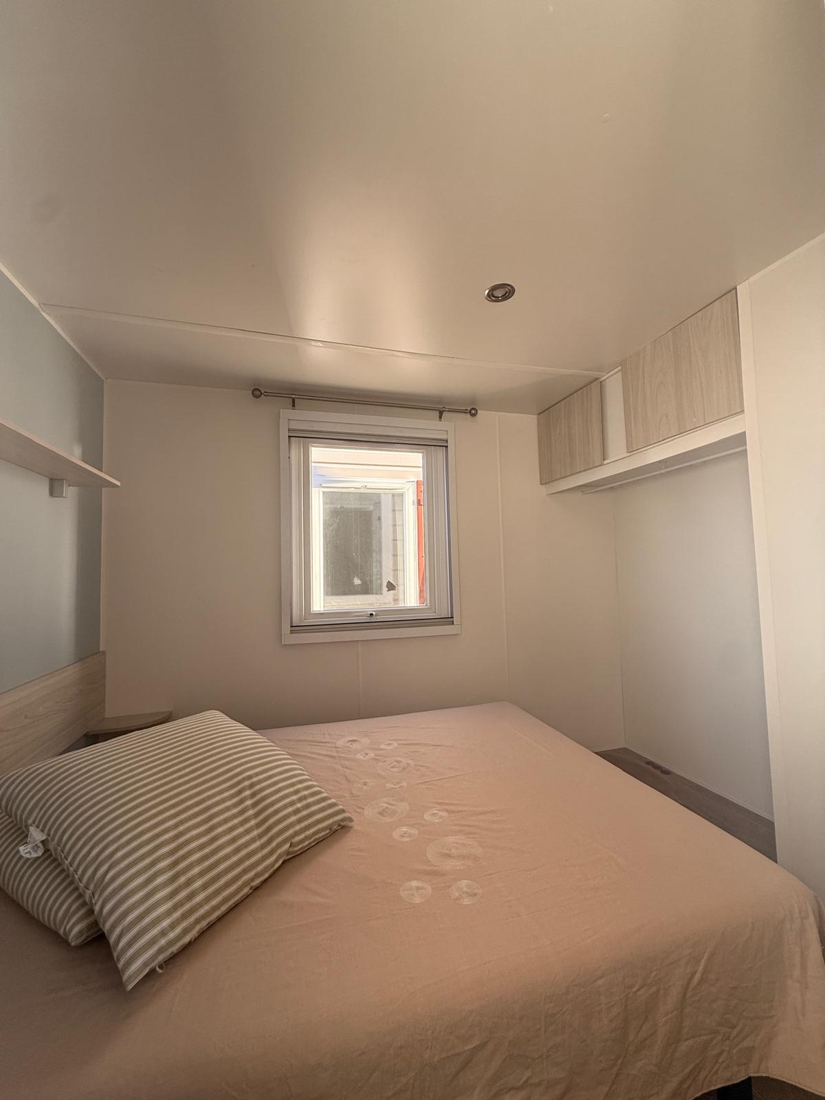 Côté nuit : une chambre parentale avec lit double confortable et grande panderie, ainsi que deux chambres enfants ou d’appoint offrant chacune deux couchages simples.