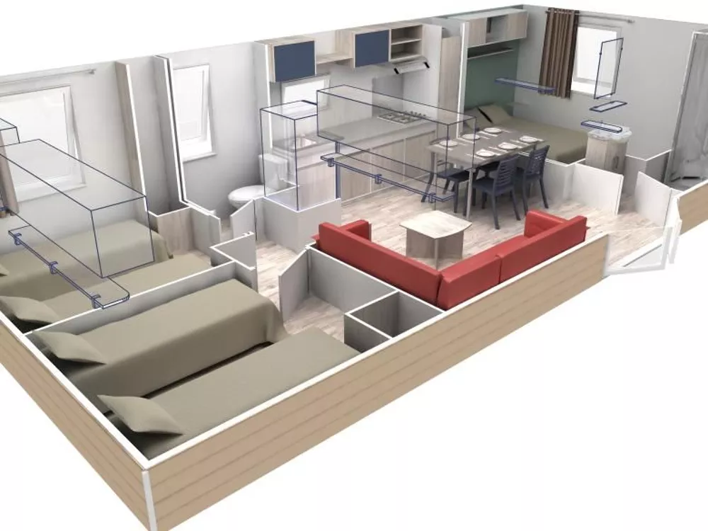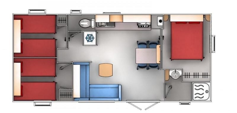 Le mobil-home TRIGANO SAMBA est un modèle spacieux et familial, conçu pour accueillir confortablement jusqu’à 6 à 8 personnes grâce à ses 3 chambres. Il combine un bel agencement, de bons équipements et une fiabilité remarquable.